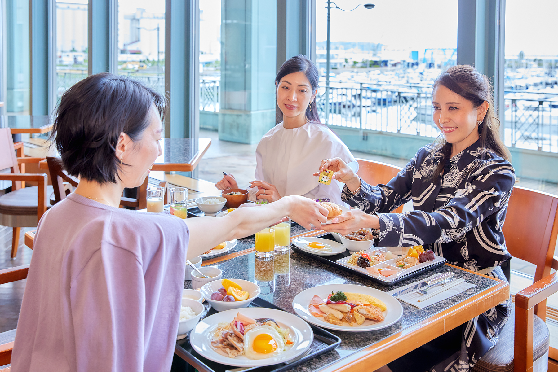 会場となる「テラスブラッセリー」からは、小樽港マリーナと石狩湾を一望できる絶景が広がり、海と空の青さが朝食をさらに特別なものにしてくれます。