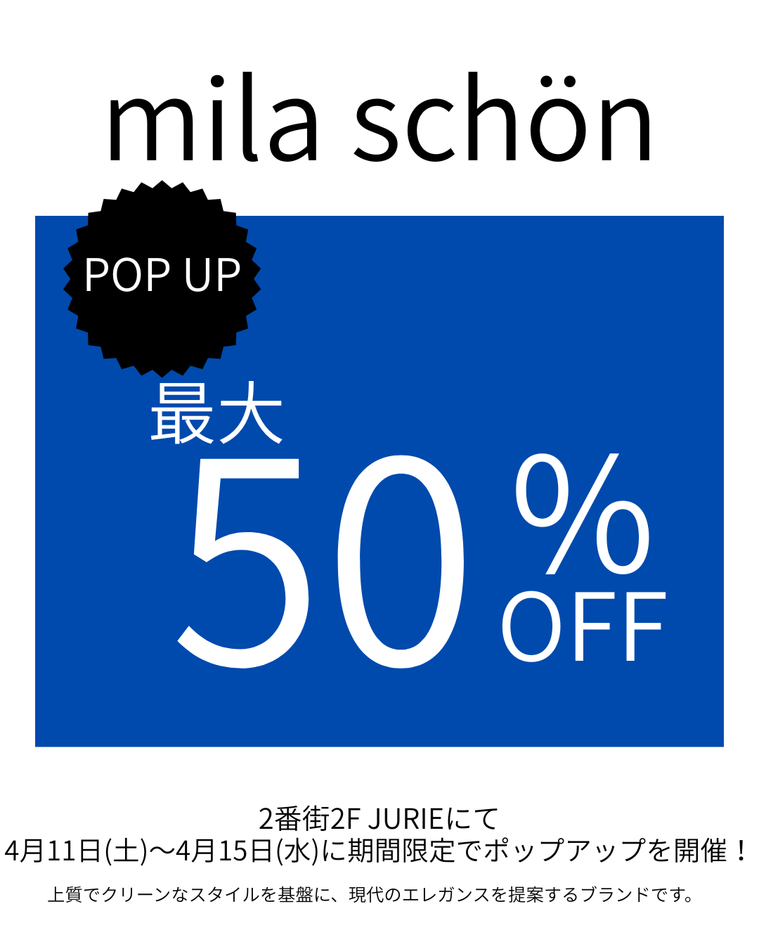 ジュリエ 4月11日(土)~15日(水)期間限定 最大50%OFF! 2026.04.10 Post この記事のタイトルとURLをコピーする 2番街2階 JURIEにて期間限定ポップアップを開催します。 なんとミラショーンが最大50%OFFと大変お得なイベントです。 開催期間:2026年4月11日(土)~4月15日(水) この機会に是非お立ち寄りください。 【毎月11日ストライプデー限定】WAON POINT 11%ポイントバック! 前の記事