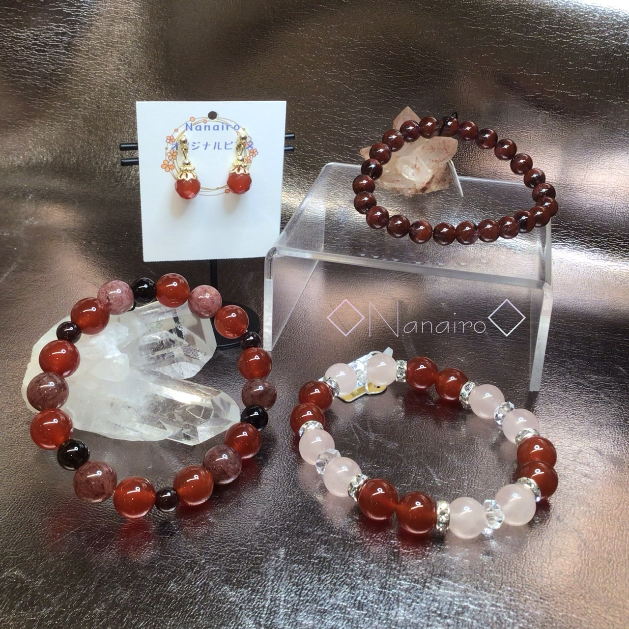 新作レッドメノウのピアスもございます。(イヤリングに変更化)