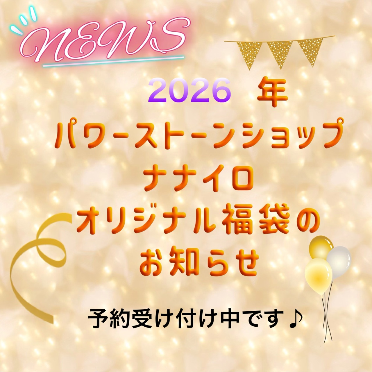 当店の『選べるブレスレット福袋』、今回もご用意致しました。まずは、予約受付中のお知らせまで!詳細はまたお知らせします☺️