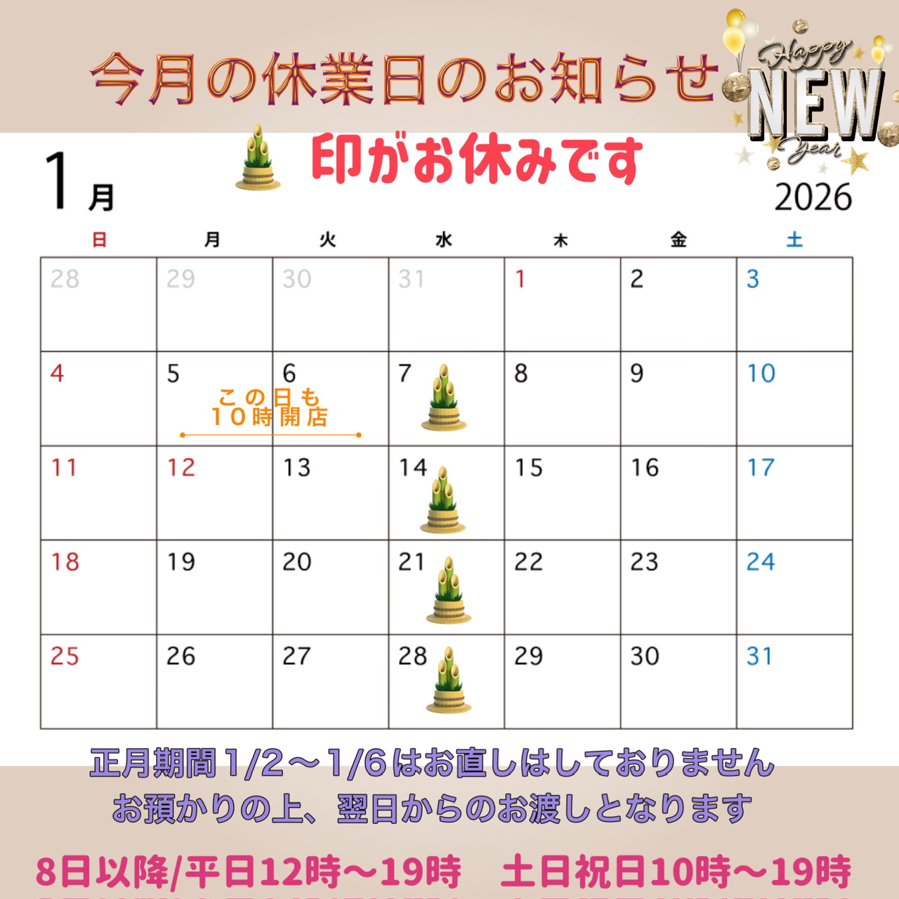 皆様こんにちは☺️当店の今月の休業日をお知らせ致します。