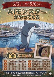 ソフトバンク 🦈5/2(土)〜5/6(日)イベントのお知らせ🦈 2026.04.23 Post この記事のタイトルとURLをコピーする 大人気AIモンスターがGWウイングベイ小樽にやってきます🦈 無料でどなたでも参加可能です😆 AIモンスターグッツもらえるかも!? ご来店お待ちしております😊 ダヴィデドーナツが初出店です! 前の記事