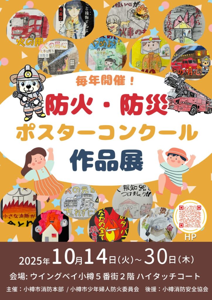 ウイングベイ小樽 10月14日(火)~30日(木) 防火・防災ポスターコンクール作品展 2025.10.10 Post この記事のタイトルとURLをコピーする 毎年開催している同作品展ですが、今年は10月14日(火)~30日(木)の期間で開催します。 会場:ウイングベイ小樽5番街2階ハイタッチコート 主催:小樽市消防本部/小樽市少年婦人防火委員会 後援:小樽消防安全協会 【10/13日まで!】アプリ会員様限定10%オフクーポンキャンペーン!【当日登録もok!】 前の記事