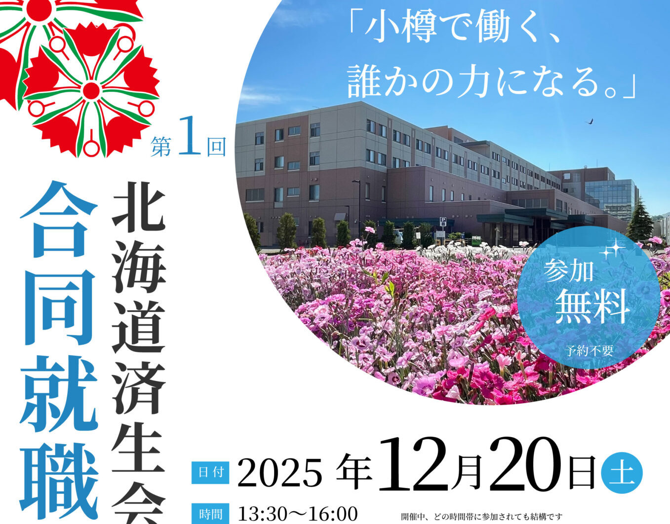 2025年12月20日(土)ウイングベイ小樽5番街1階 済生会ビレッジにおきまして合同就職説明会を開催いたします。