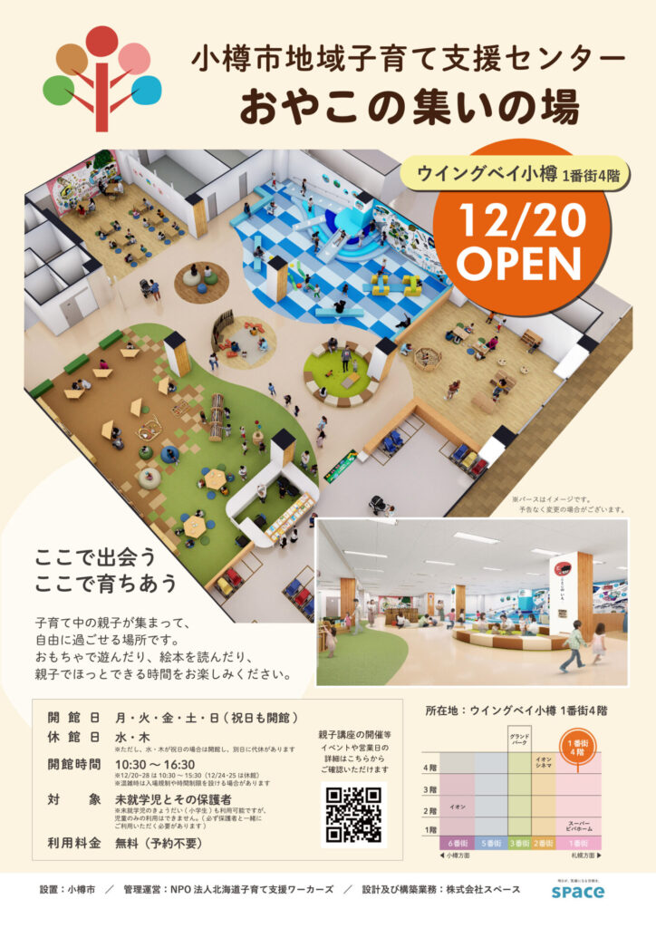 ウイングベイ小樽1番街4階に、小樽市地域子育て支援センター「おやこの集いの場」が2025年12月20日(土)オープンします!